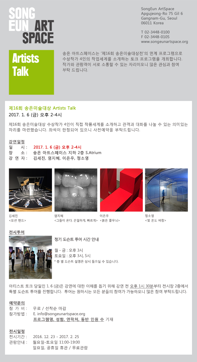 제16회 송은미술대상전_Artists Talk_1/6(금) 2PM
