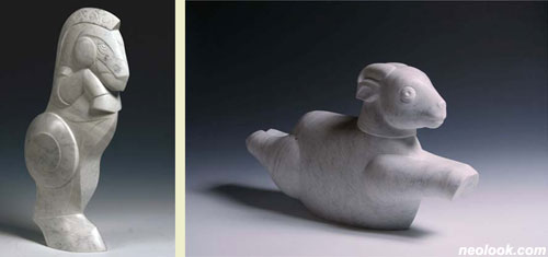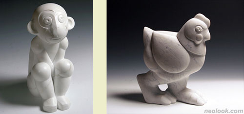 - 임원행_원숭이_36×15×19cm_대리석_2010 임원행_닭_37×31×15cm_대리석_2010