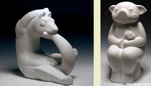 - 임원행_개_46×47×22.5_대리석_2010 임원행_돼지_45×23×22cm_대리석_2010