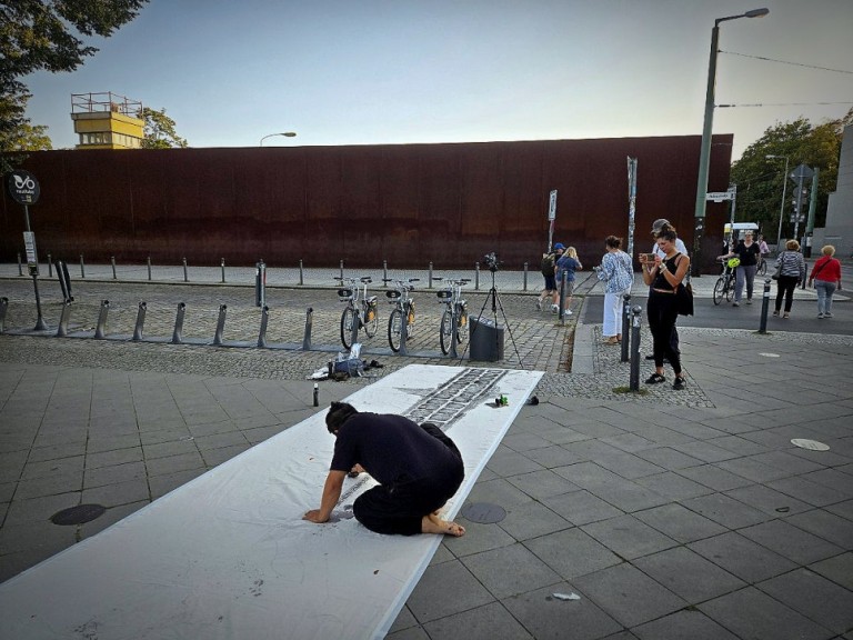 베를린 장벽을 기념하는 이정표와 서쪽의 화강석 바닥에 나 있는 총탄 자국을 탁본한다. 이것은 동독 주민들이 장벽을 넘어 서독으로 탈출하자 동독 경비 군인들이 사격을 가해 난 총탄 자국이다. 그리고 당시 서독으로 넘어가려다 잡히거나 총탄에 목숨을 잃은 사람들의 이름이 적힌 명판을 함께 탁본 작업을 한다.
