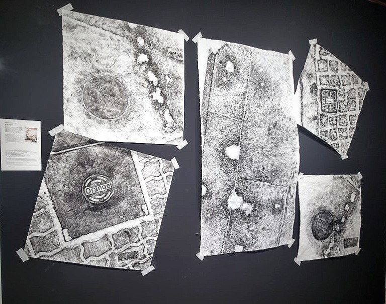 나는 탁본의 두드림을 통해 분단의 역사 속에서 사라졌던 이들을 부른다. 이것은 나만의 주술적 의식이다. 그렇게 만든 탁본 이미지 위로 쓰러진 사람의 그림자가 함께 나타나 있다.