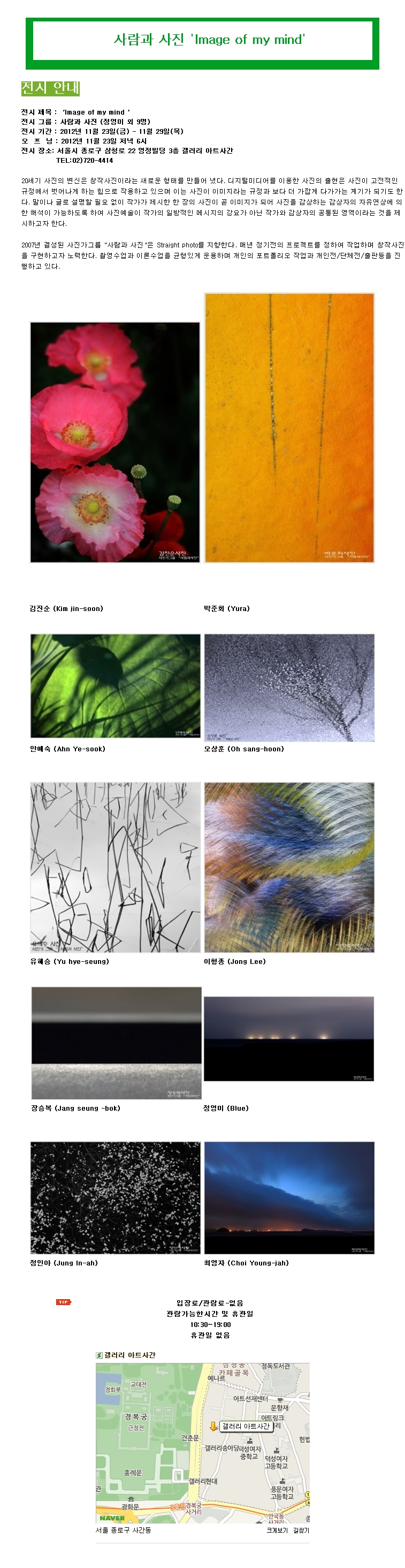 서울특별시 종로구 사간동 69번지 영정빌딩 3층 갤러리 아트사간