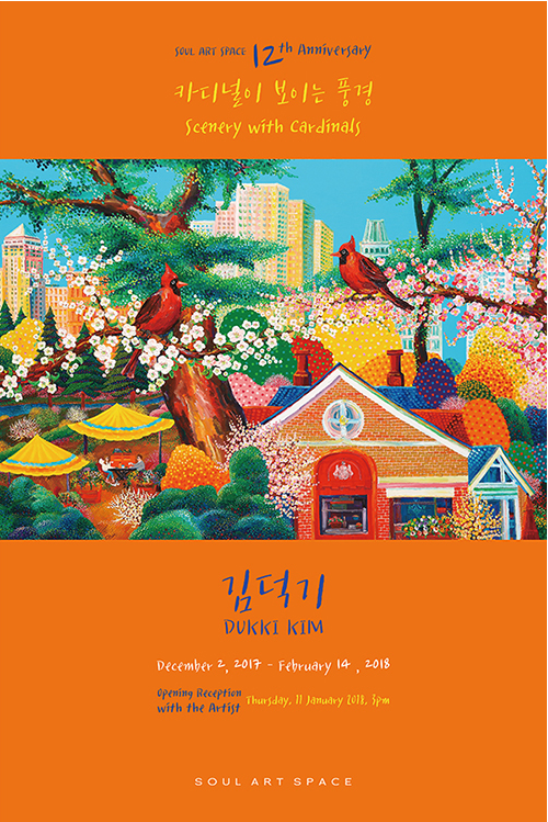 소울아트스페이스는 개관 12주년을 기념해 김덕기 작가의 전시를 개최합니다. 일상적인 가족의 모습과 아름다운 자연이 어우러진 화면으로 행복는 그의 작품은 화려한 색점과 온화한 빛이 캔버스를 수놓으며 마치 행복과 소망으로 가득한 작가 내면의 풍경화를 보는 듯합니다. 최초로 공개되는 뉴욕시리즈 작품과 지난해에 이은 유럽시리즈 신작 그리고 봄.여름.가을.겨울시리즈 200호 대작을 함께 선보이는 이번 전시에 여러분을 초대합니다. opening reception with the artist -thursday, 11 january 2018, 3pm |