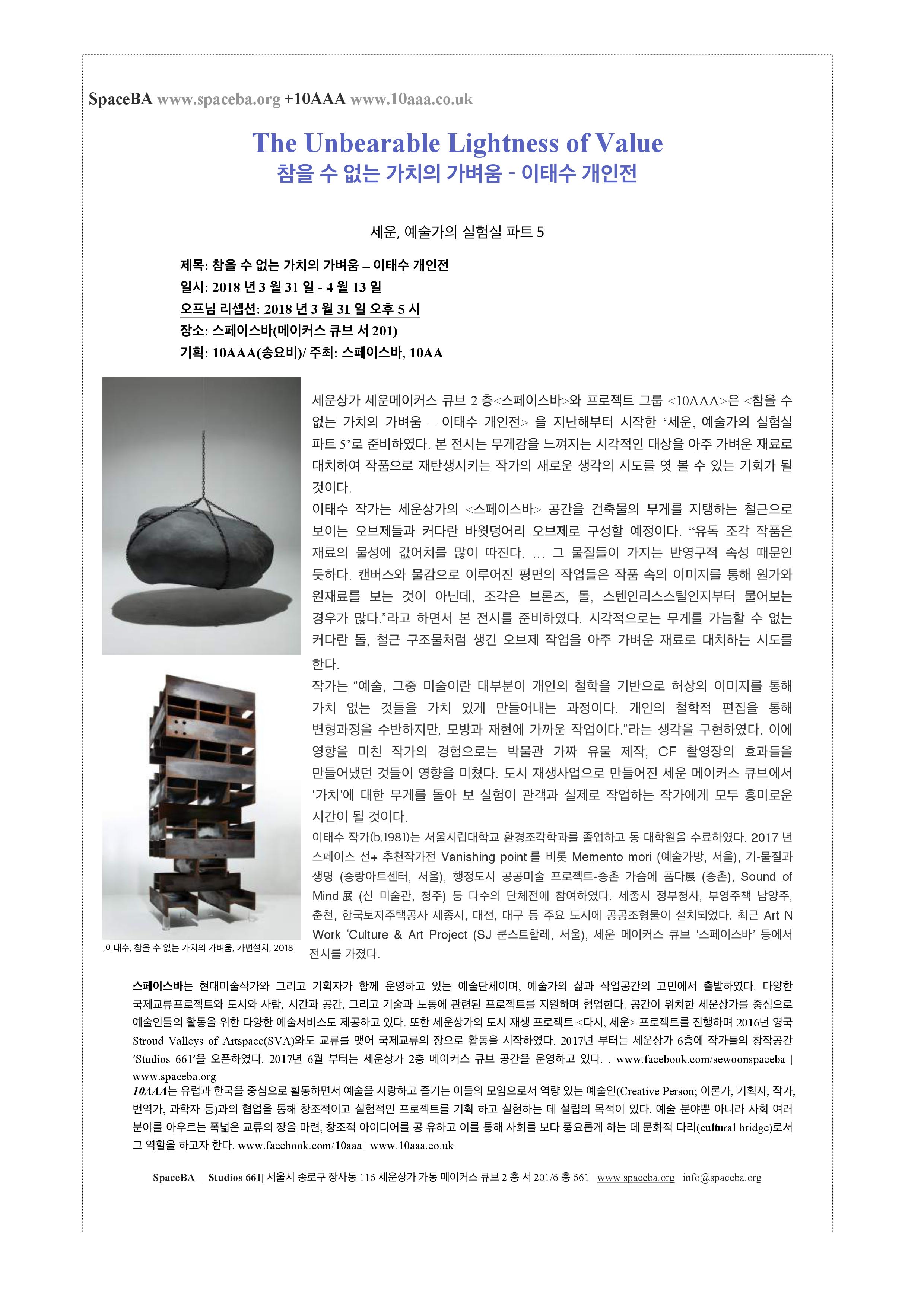 The Unbearable Lightness of Value 참을 수 없는 가치의 가벼움 – 이태수 개인전