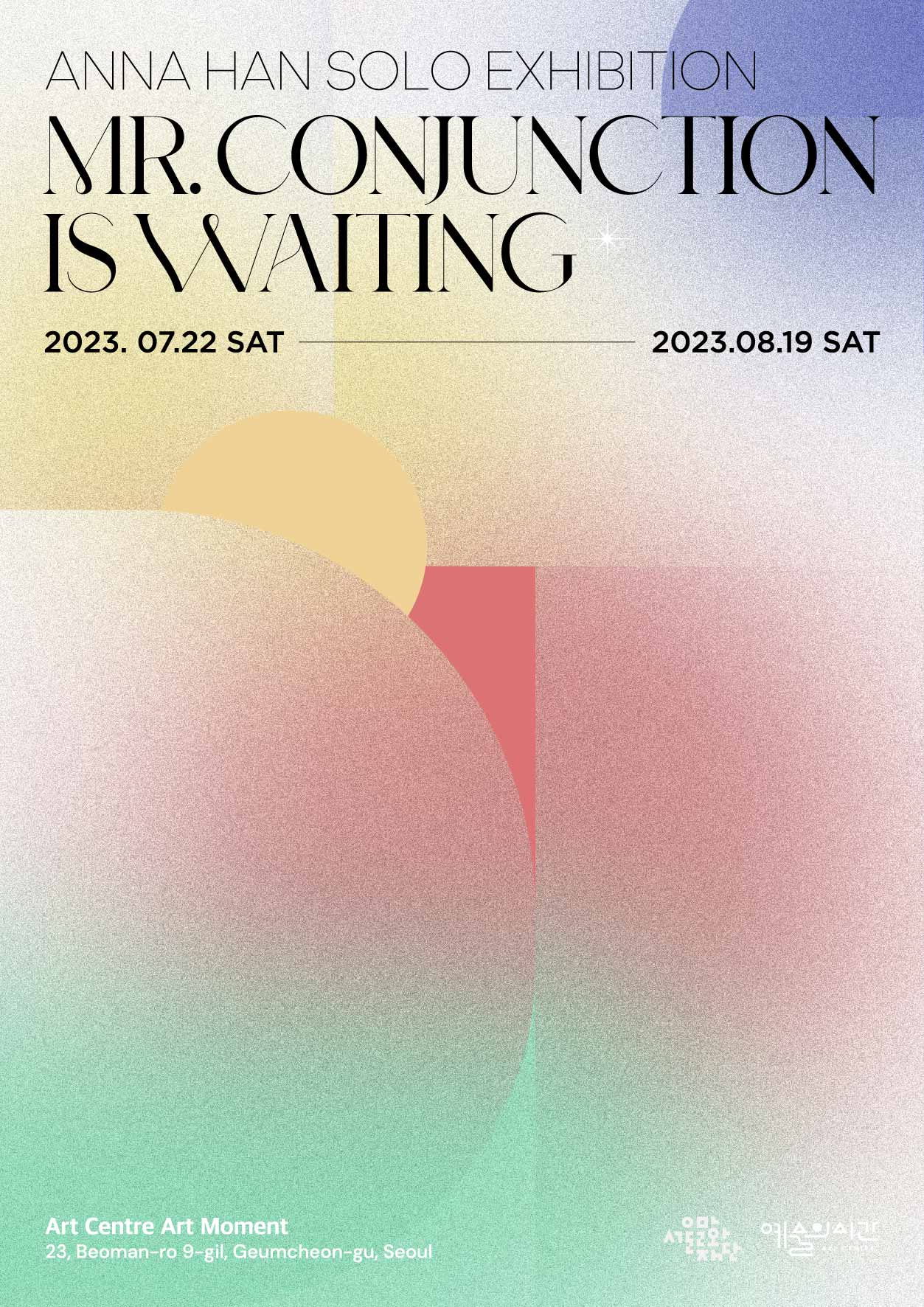 작성자 106 조회 8,371회 작성일 23-07-13 14:17아트센터 예술의 시간은 2023년 7월 22일부터 8월 19일까지 애나한 개인전 《Mr. Conjunction is Waiting》을 선보인다. 애나한은 이번 개인전에서 작가 특유의 공간 연출을 기반으로 신작 회화와 영상을 활용한 애니메이션 설치를 선보인다. 이번 개인전의 주요 개념인 '접속사(conjunction)'는 전시공간에 내러티브를 부여하며, 기존에 시도되었던 색과 기하학의 시각적 언어에서 개념적 차원으로의 확장성을 보여준다. 각 전시 구역을 특징짓는 접속사는 최소한의 서사 지점을 형성하고 관객과의 적극적인 대화를 시도한다. 이러한 과정은 텍스트를 중심으로 형성되는 서사적 맥락과 예술 언어의 시각적 맥락의 상호보완을 이뤄낸다. 관람자의 경험으로 완성되며, 여러 열린 해석을 환영하는 이번 전시는 형태가 아닌 관계를 중심으로 펼쳐진다. 이번 애나한 개인전에서 관객의 다양한 해석을 통해 다층적 층위의 경험이 생성되길 기대한다.