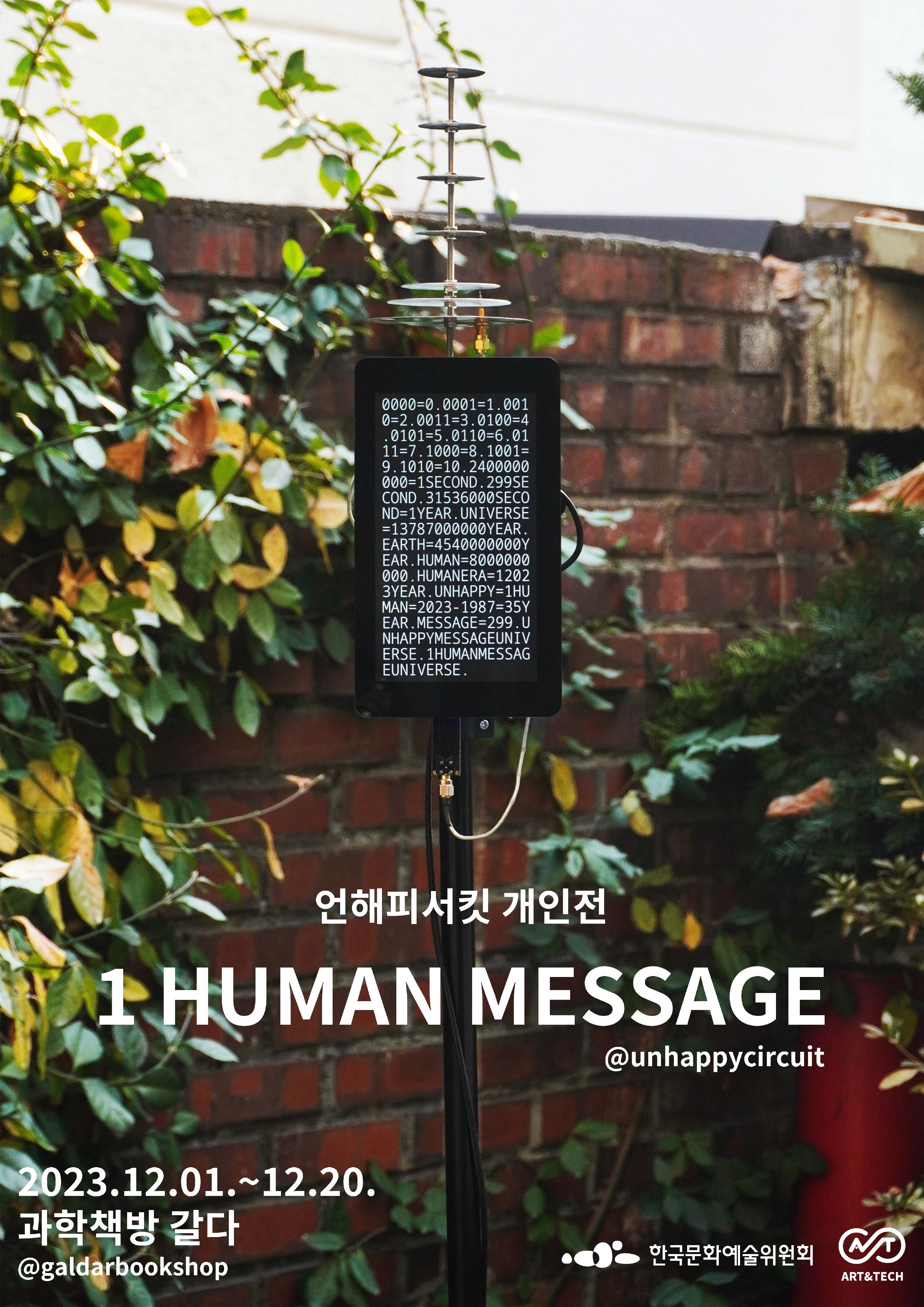 프로젝트 <1 HUMAN MESSAGE>는 한 인간이 살아온 ‘시간’에 대한 짧은 기록이자 데이터인 <1 HUMAN MESSAGE>를 광대한 우주에 남기기 위한 다원 우주예술 프로젝트이다. 언해피서킷은 직접 제작한 이동식 우주 데이터 송신 장치를 가지고 지구 곳곳을 다니며 우주를 향해 메시지를 전송하는 작업을 수행한다. 이는 곧 자신의 흔적을 우주에 남기기 위함이자 본질적으로 유한하고 외로운 우리 인간의 삶과 정신을 우주와 연결하기 위한 한 인간의 여정이다.