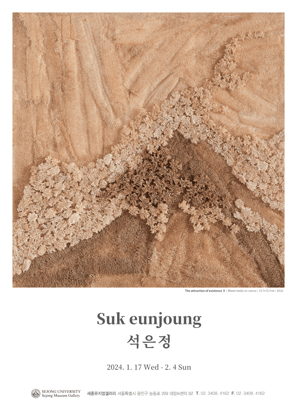 세종대학교 세종뮤지엄갤러리에서는 수세미의 섬유질 조직을 활용하는 작업을 통해 물성과 물질의 결합으로 독특한 미적 경험을 선사하는 석은정 작가의 작품을 선보입니다.
