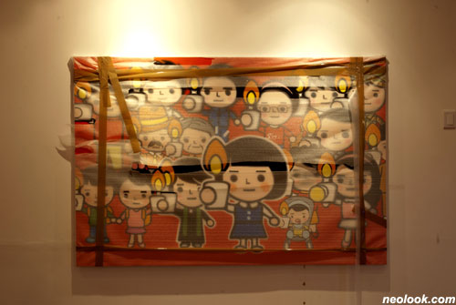 ● 전시장의 작품 중에 포장된 상태로 걸린 작품이 있는 데요, 이렇게 설치한 이유를 설명해주실 수 있나요? 이 작품은 작년 이맘때 경기도 미술관에서 열린 "1990년대 이후의 새로운 정치미술 : 악동들 지금/여기" 전에 출품했던 『돌아온 촛불』 이라는 작품이에요. 원래의 제목은 『촛불 소녀』였는데요, 국공립 미술관 전시에서 반송됐어요. 아무래도 정치적인 이유 때문이겠죠? 전시 타이틀은 정치미술이면서 아이러니하게도 촛불의 이미지는 걸 수 없다는 거죠. 그래서 제목을 돌아온 촛불로 바꾸고 포장된 상태 그대로 걸었습니다. 반송된 것이니까요.