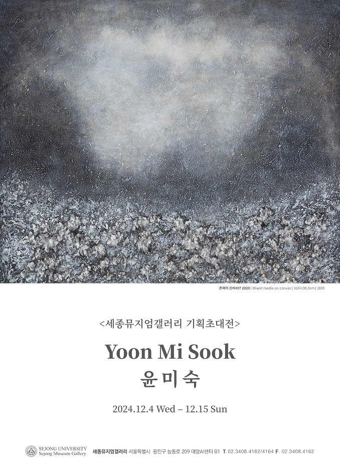 이번 전시에서는 자연에서 얻은 소중한 정서들을 떠올리며 생성과 소멸, 반복되는 어둠과 상실의 이미지와 작가 내면의 감정을 함께 담아낸 회화 작품 50여 점을 2024년 12월 4일부터 12월 15일까지 세종대학교 내 세종뮤지엄갤러리 2관에서 무료 관람 가능하오니 많은 관심 바랍니다.